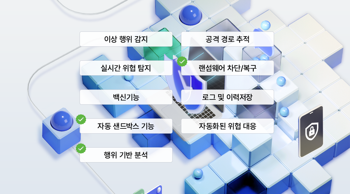 랜섬웨어의 모든단계를 감시하고 대응 및 복원까지 가능한 서비스입니다.
