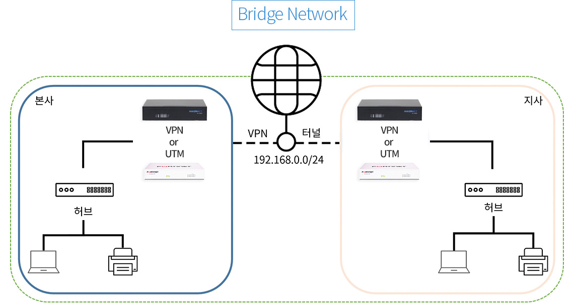 공유 본지사간 네트워크 공유 불가 브릿지 구성으로 본지사간
